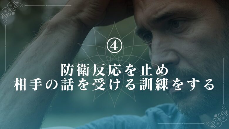 自分の口癖が関わってはいけない人の口癖だった時にすべきことの4つ目は、「防衛反応を止め相手の話を受ける訓練をする」です。