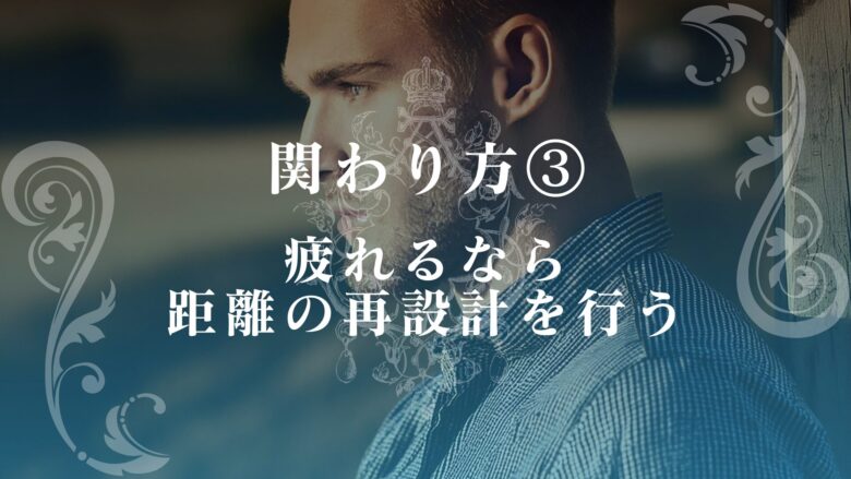 自分から話さない人との疲れない関わり方の3つ目は、「疲れるなら距離の再設計を行う」です。