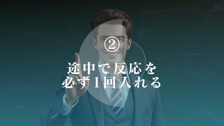 リアクションが薄い事を改善する際に効果を高めるコツの2つ目は、「途中で反応を必ず1回入れる」です。