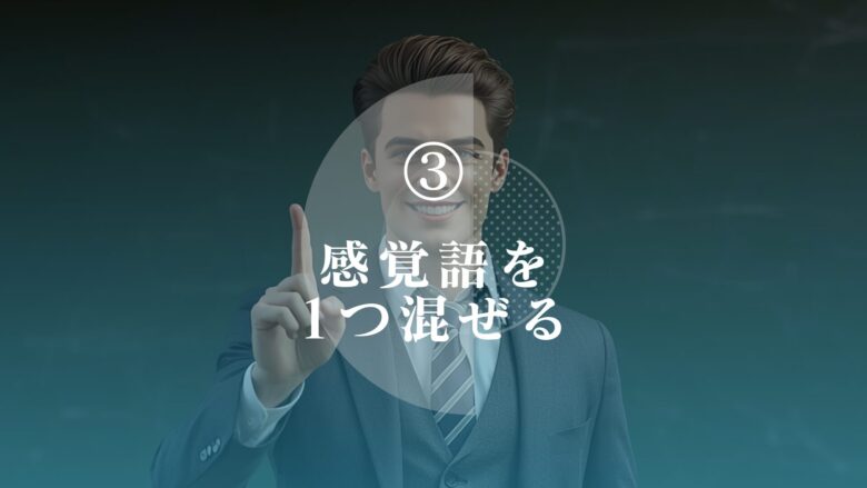 リアクションが薄い事を改善する際に効果を高めるコツの3つ目は、「感覚語を1つ混ぜる」です。