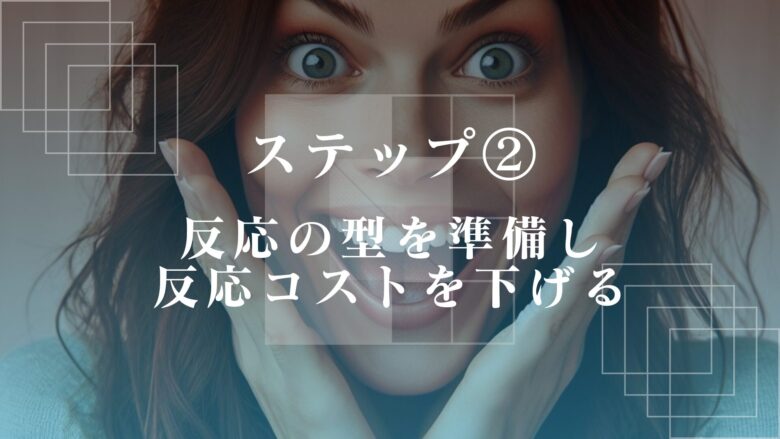 リアクションが薄いのを改善する方法のセカンドステップは、「反応の型を準備し反応コストを下げる」です。