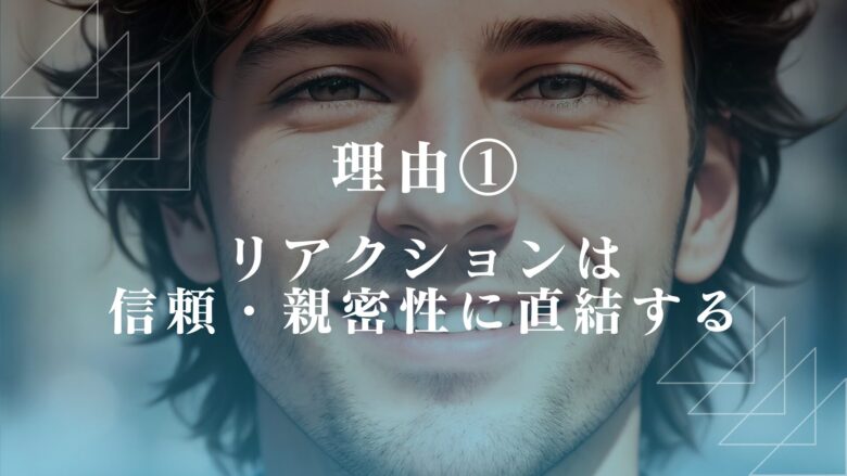 リアクションが薄い事を改善すべき理由の1つ目は、「リアクションは信頼・親密性に直結する」です。