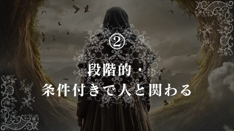 自分以外の人間は全員敵と考える時にすべきことの2つ目は、「段階的・条件付きで人と関わる」です。