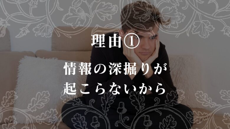 好奇心がない人がつまらない理由の1つ目は、「情報の深掘りが起こらないから」です。