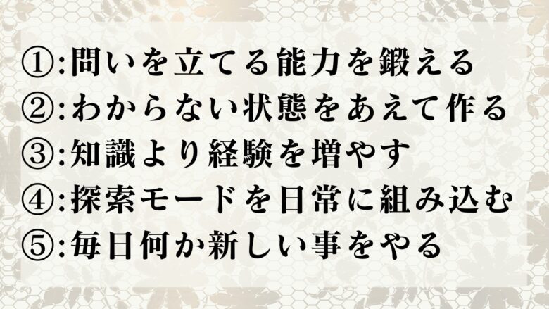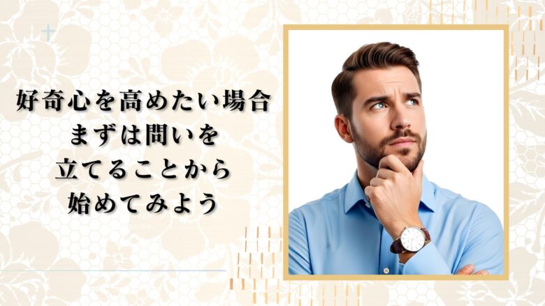 好奇心を高めたい方の場合、問いを立てる事から始めてみるのが負担が少なくておすすめですね。