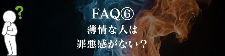 いえ、薄情な人であっても罪悪感や共感といった良心由来の感情は持っていると考えるのが妥当でしょう。ただ彼らは表出しにくいというだけです。もっとも、サイコパス=薄情な人という前提に立てば、この主張は間違いになるのでしょうが、本稿ではそのような前提で薄情な人をとらえていません。