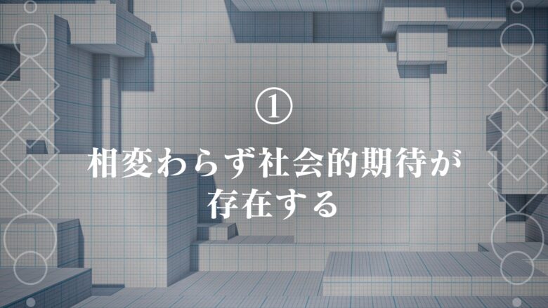 男らしさは不要であってもそこに立ちはだかる壁の1つ目は、「相変わらず社会的期待が存在する」です。