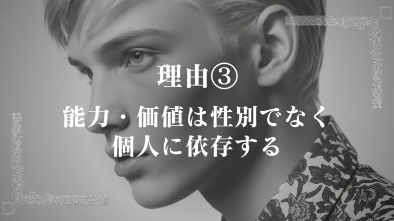 男らしさは不要である理由の3つ目は、「能力・価値は性別でなく個人に依存する」です。