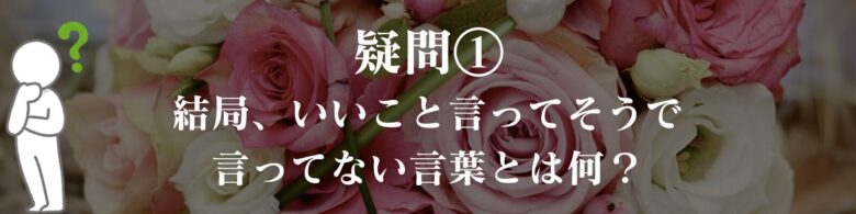 最後に、いいこと言ってそうで言ってない言葉に関する疑問に対して、答えていこうと思います。